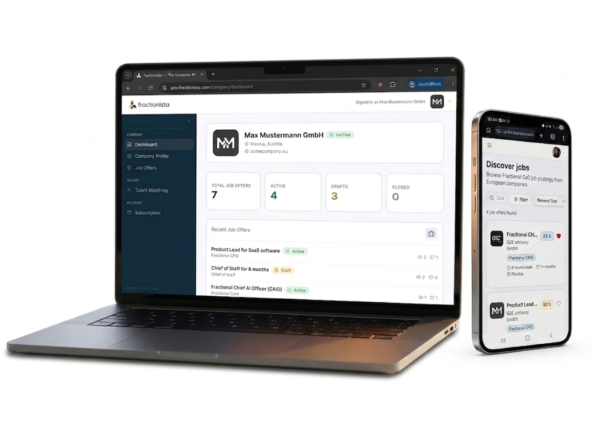 This is what fractional leadership actually is: a career format that matches how experienced people want to work now. Multiple mandates in parallel. Clear scope. Real impact without the weight of a single full-time role. Fractionista exists to make this the normal way senior leaders deploy their experience — and the normal way ambitious companies access it.